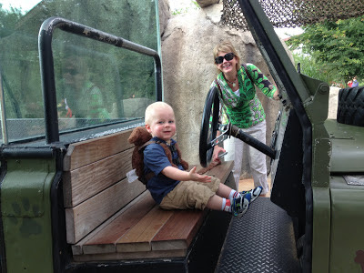 He still could care less about the TV. I mean, he will glance at it occasionally if we have cartoons or something not-sports related on, but more out of curiosity than real interest. Now, the computer is something altogether different. He has learned that he can watch some of his favorite songs via You Tube on there, and is a big fan of singing along. Thanks to THIS song, Banner now knows most of his animal sounds, and the rest (like monkey saying "who-who-who-he-he-he" we are filling in along the way). At first I was wary of screen time altogether, but I figure 7-10 minutes (a.k.a. Banner's attention span) every now and again can't hurt. Plus, I LOVE his little "RWAR!" and "Hisssssss!"